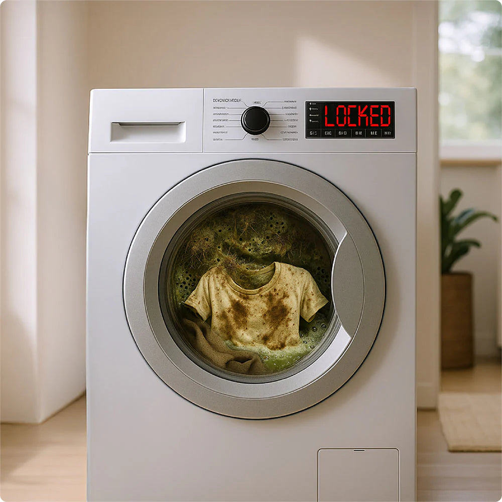 Detergent does not clean your machine! It actually fuels the problem and contributes to the harmful buildup. After some time, your wash cycles become a waste of water, time, money, and energy. Clothes just don't get clean anymore. That's why your washer needs to be regularly deep cleaned. Residue builds up in your washer, and when combined with the dark and humid environment, it leads to a foul smell. Eventually, these unpleasant elements find their way back onto your clothes and body.